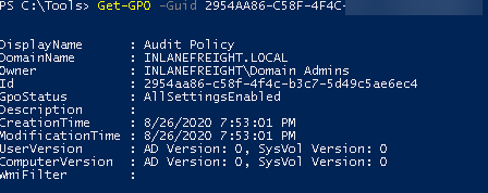 Hi, I’m stuck on the Enumerating GPOs section of the AD PowerView lab. The only question is trying to get the audit policy GUID. I am 99% sure I have the correct ID but it isn’t accepting my answer. I’ve tried all uppercase and lowercase numbers. I’ve copied the guid from the Get-GPO cmdlet and from the server manger GUI and neither have worked. I’ve attacked screenshots of the Get-GPO request below to give some context.