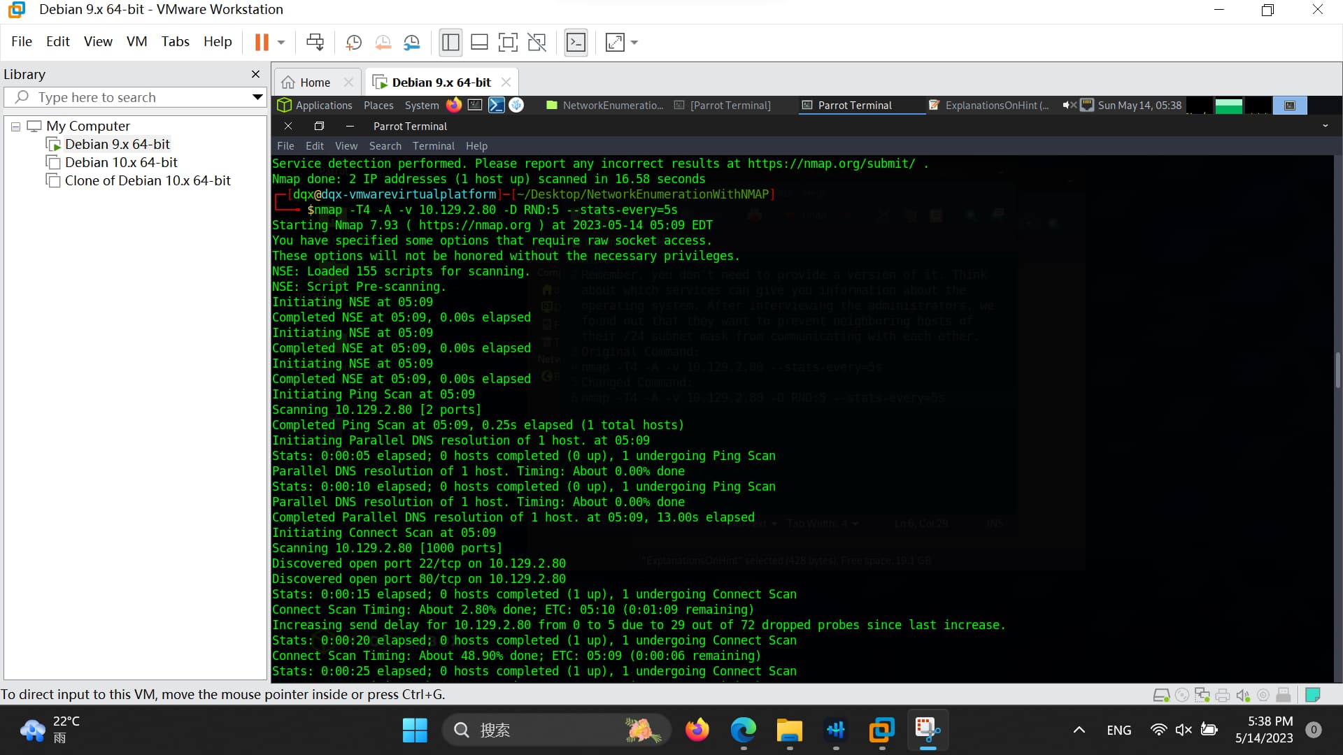 “nmap -T4 -A -v 10.129.2.80 -D RND:5 --stats-every=5s”