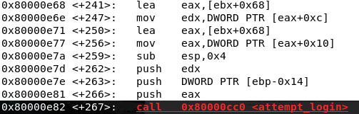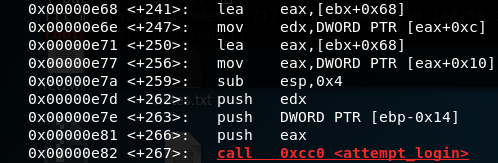 So now we’ll return to the disassembly of attempt_login to ensure we are patching correctly before we call login.