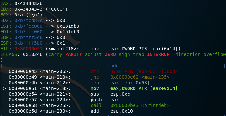 No time like the present anyway, so let’s get started. Again, some memory addresses will be slightly offset in gdb, compared to the running process, but since forGP was kind enough to give us the memory location we can easily make corrections.
