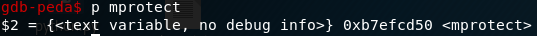 We’re also going to need the address of mprotect, which we can do quite easily within gdb.