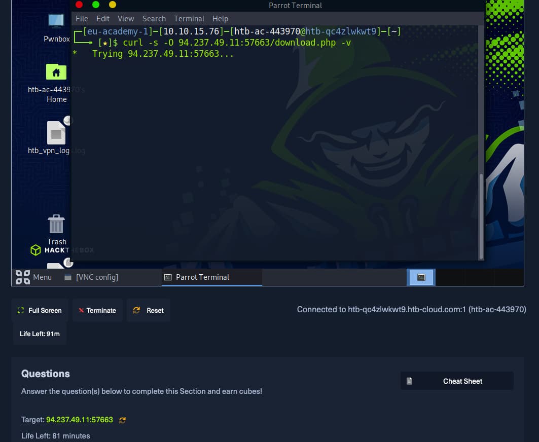 Hi, I’m at the beginning of the web Requests module and I can’t connect to target server. It looks like it should work. I was able to ping target host.