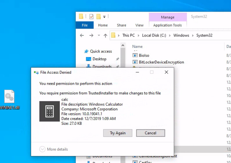 in this section, i’m trying to move ( not make a shortcut of calc executable ) to a writable directory