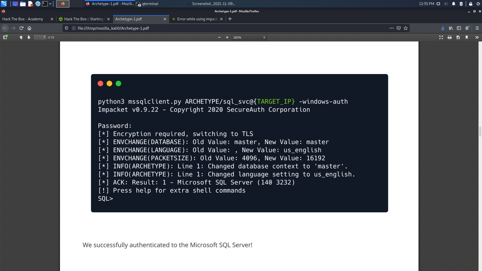 If you are still having trouble, you may want to consider seeking assistance from the Impacket community or consulting with a technical expert who is experienced with Impacket and SQL Server.