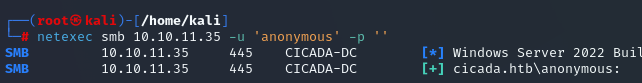 smbmap -H 10.10.11.35 -u '' -p ''smbmap -H 10.10.11.35 -r -u 'a' -p 'a' --depth 5impacket-smbclient [email protected]