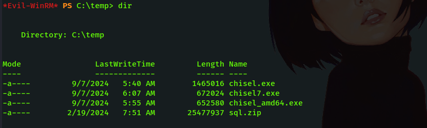 I have an sql.zip file on the target Windows machine using the Evil-winRM powershell terminal.