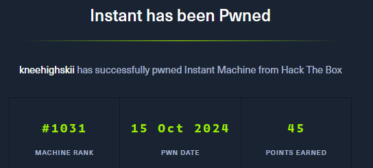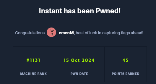 Thanks for the tips guys! Owned Instant from Hack The Box!