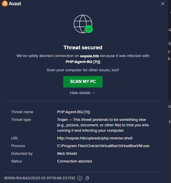 Actually see I got a different error when uploading the shell without the .php ext. Added the exemption to my Avast AV, turned off the firewall temp to see the following webpage