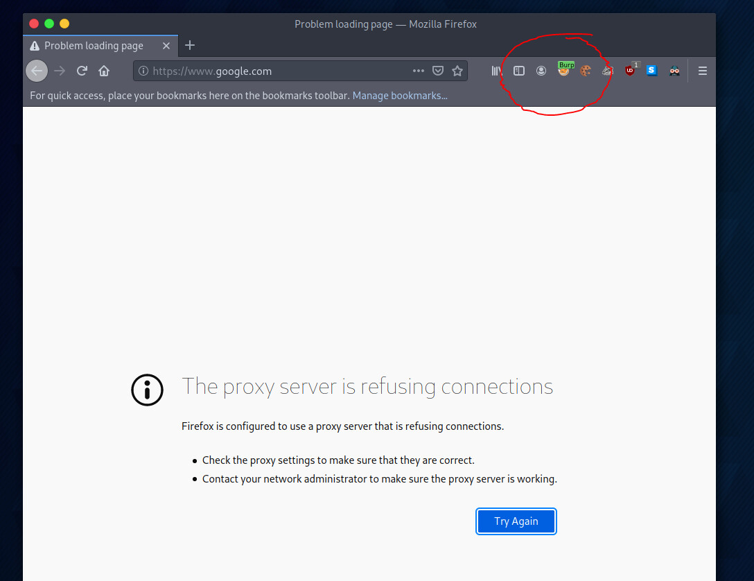 After following the instructions for Burpsuite and ZAP installation and the CA download and install, I cannot access the internet via Firefox in any way now and it’s giving me an error: