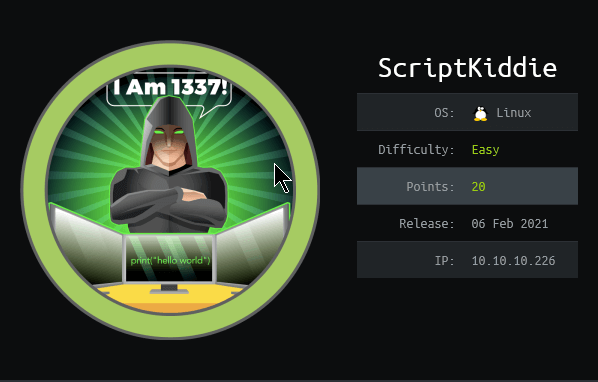My write-up of the box Scriptkiddie. If you have any improvements or additions I would like to hear! I look forward to learning from you guys!