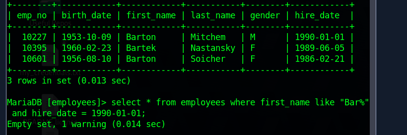 Regarding your first question: There are several tables in the database employees. Try to look there for information about departments. What you show in your pictures seems to be the table employees.employees.