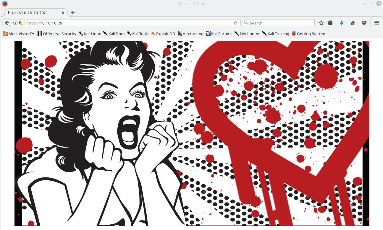 Now this image was a pretty hint as to what we may needed to do with the box later on. It took some time to pick up on the context clue, but to spoil it that heart was the logo for the “HeartBleed” Vulnerability. So likely this box has something to with heartbleed.