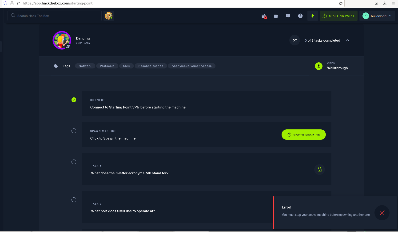 Click on the machien in the top (circle next to searchbar) and stop that machine first.